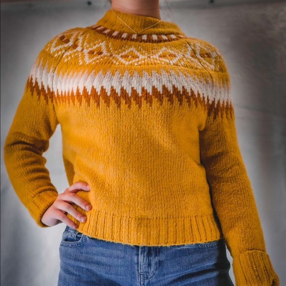 Women’s small yellow/orange/white/grey American Eagle sweatshirt! The neckline is high but not a turtle neck! Great condition!