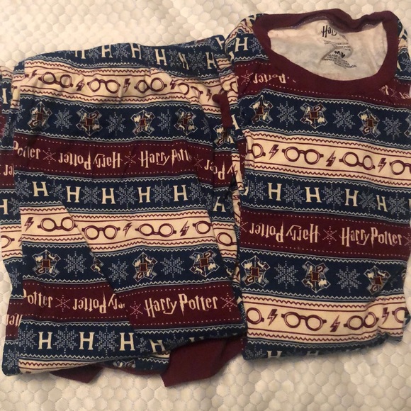 Long sleeve, men’s Medium sized Harry Potter Pajamas! Worn once! Received as a gift but too big for me! Men’s Medium, but I imagine it would fit a women’s XL! Keeps you warm, comfy, and the print is similar to a fair isle print.