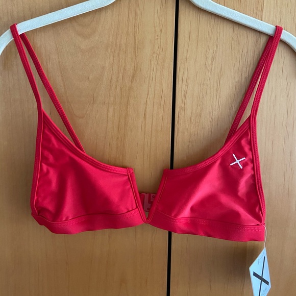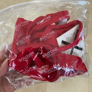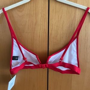 Red Boutine LA v-cut bikinis top with adjustable shoulder straps, brand new with tags! In perfect condition and sells for $50 on their website. Not 100% sure I want to sell this yet, but make me an offer!