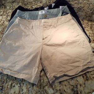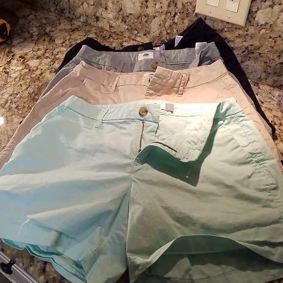 I have for you a bundle of Old Navy Shorts, all like new condition. Sz 4. Colors are black, tan, olive green, a seafoam kinda green. Please see pictures that indicate all have inseam of five. Just washed, sorry to lazy to iron.