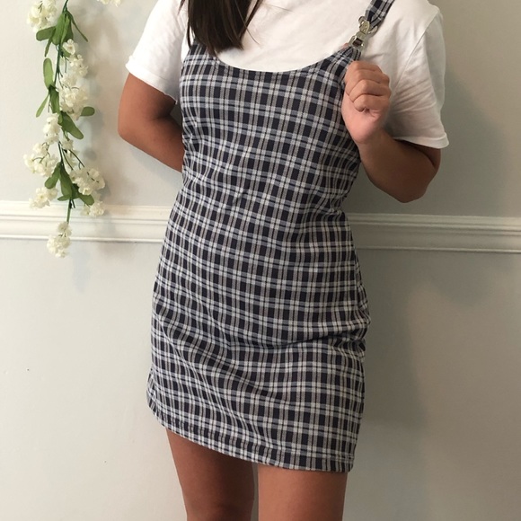 Blue, white and grey Plaid Overall dress with metal latches