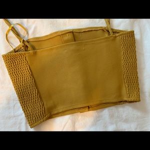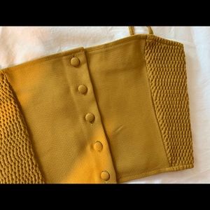 Wild honey mustard crop top with vertical fabric buttons. NEW never worn. NO TAGS ATTACHED. Size SM.