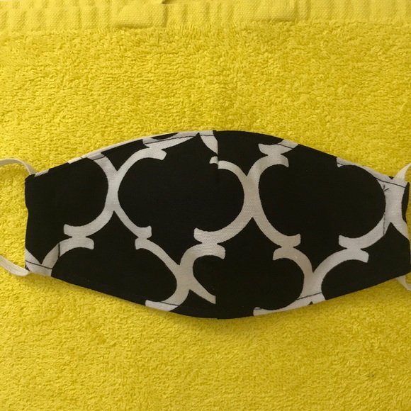 Black and white cotton face mask in size small. Ideally for kids between 5-12.