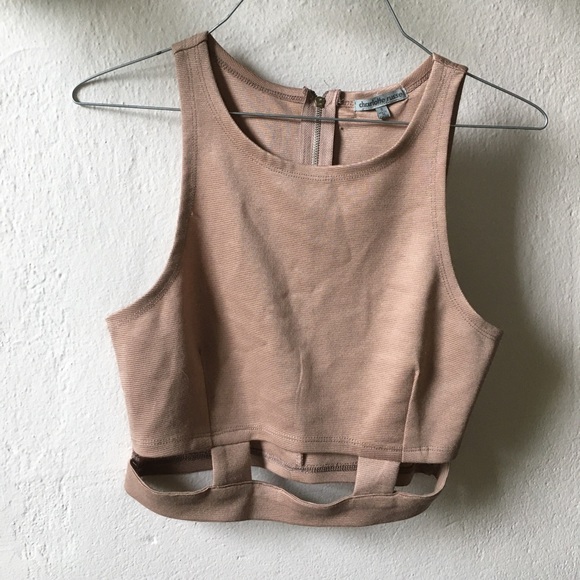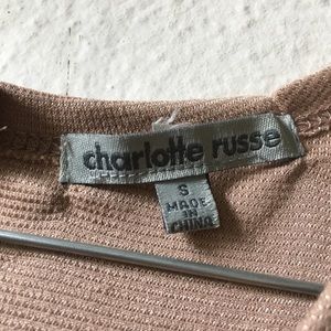 Super cute Charlotte Russe crop top. Zips in the back. Color is like a nude pink. Available until October 1. If interested please send reasonable offer. Thank you:)