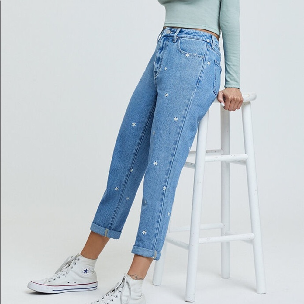 Pacsun daisy mom jeans! These are SO cute, and I’m so sad to give them up but they just don’t fit me. They’re a size 26 but fit 26-27 depending on how tight you like mom jeans! Slightly cropped unless you’re short! Retail for $60