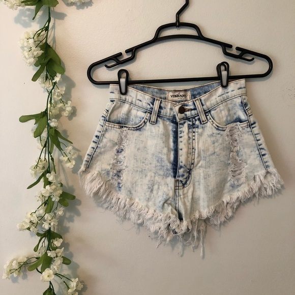 Brand Vibrant acid wash distressed shorts. Gives festival vibes!