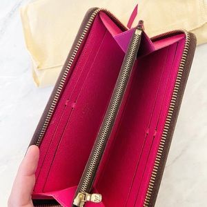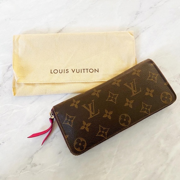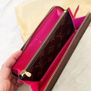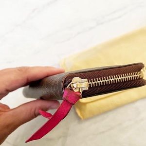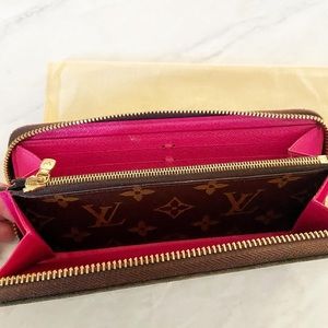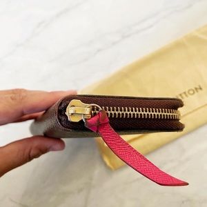 Gorgeous authentic Louis Vuitton Clemence Wallet! Interior is pristine. Exterior looks good overall but the pink leather zipper pull shows discoloration. Comes with dust bag! Currently retails for $570+tax