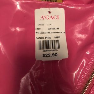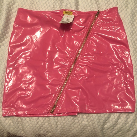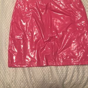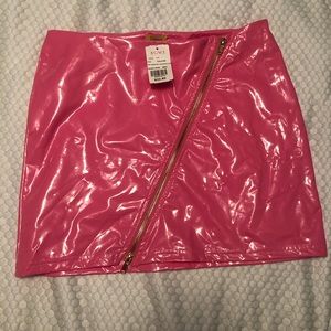 Candy Pink asymmetrical gold zippered “leatherette” mini. NWT, has sustained some creasing from being folded, as pictured.