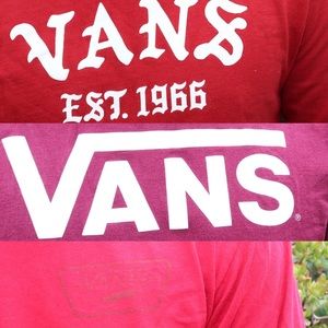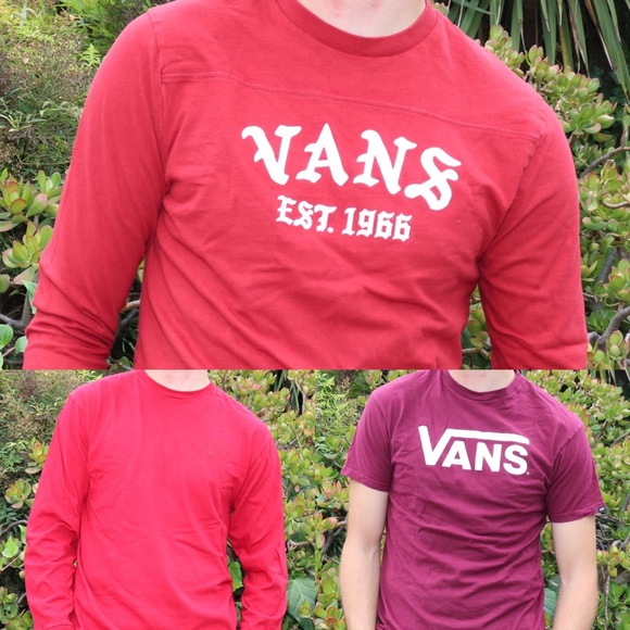 3 Medium Red Vans Shirts. Perfect condition with no stains, stretching, or holes.