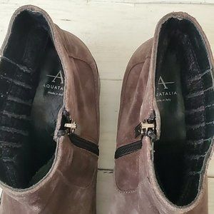 New! AQUATALIA Size 11 Gray Suede Ankle Booties Boots Stacked Block 2" Heel. Brand new without tags or box/shelf pull. May show light shelf wear on the soles.