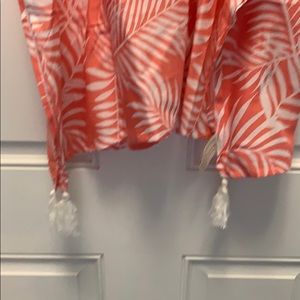 New never worn sunset cover up. Beautiful coral and white color with drawstrings and tassels at the bottom. Can be worn many ways! ๐