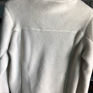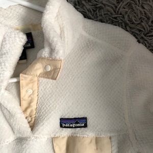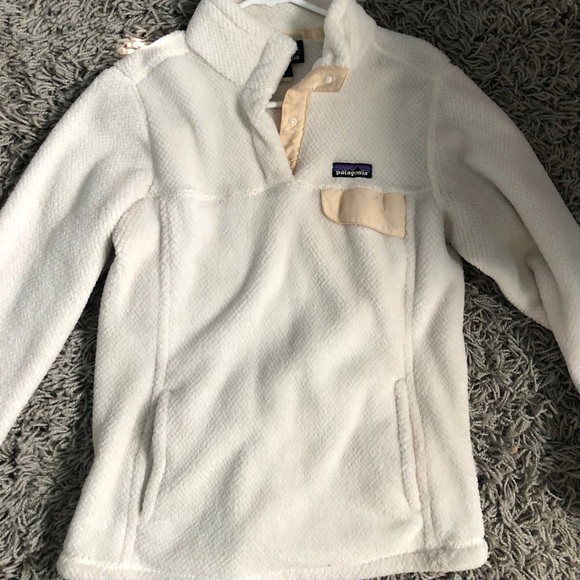 Super cozy cream/off white patagonia quater T-snap sized M! One of my favorite sweaters but I’m too scared to wear white so it’s time to go to a better home! It fits true to size but could fit a S for a roomier fit, so comfy and cute!