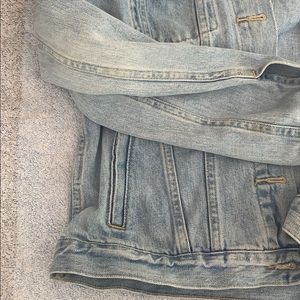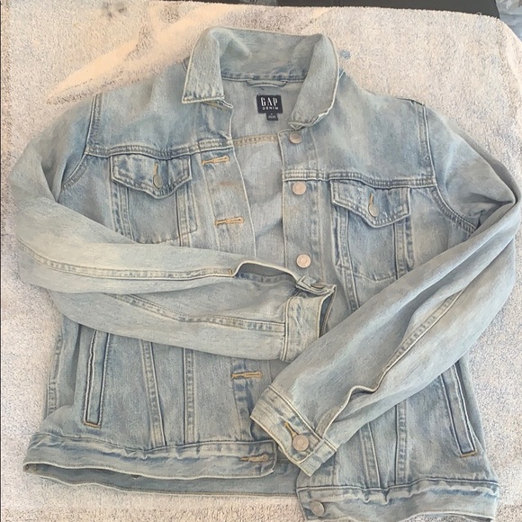 Gap light wash denim jacket. Four functional pockets. Two buttoned pockets, two buttoned (-able) sleeve cuffs. Jacket can be fully buttoned (6 buttons). (Sold on different platform)