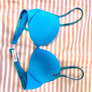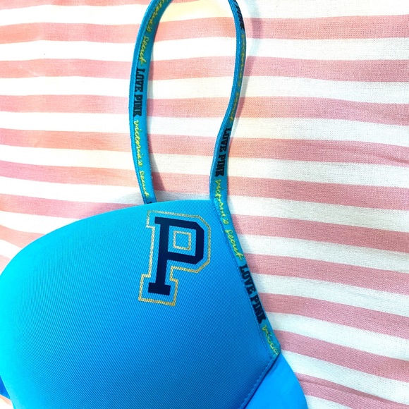 Super cute VS PINK Vintage bras. Both are 34B and both can be changed from crass back to regular fit. They are both push up bras but the padding is air padding. It’s not fabric padding. The quality is amazing & I honestly wish I could keep them but I recently got a boob job lol. Only flaw is the tag on 1 bra which is shown in the pics.