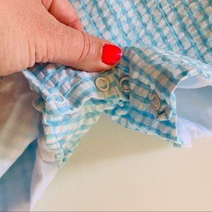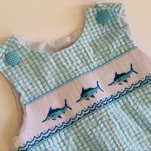 Southern Smocked Nautical Fish Striped Romper Size 2T. Really Adorable. Snaps At Bottom. 19” L. X 12” W. Very Good Condition.