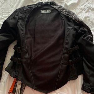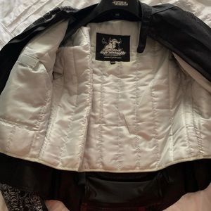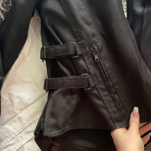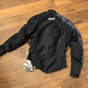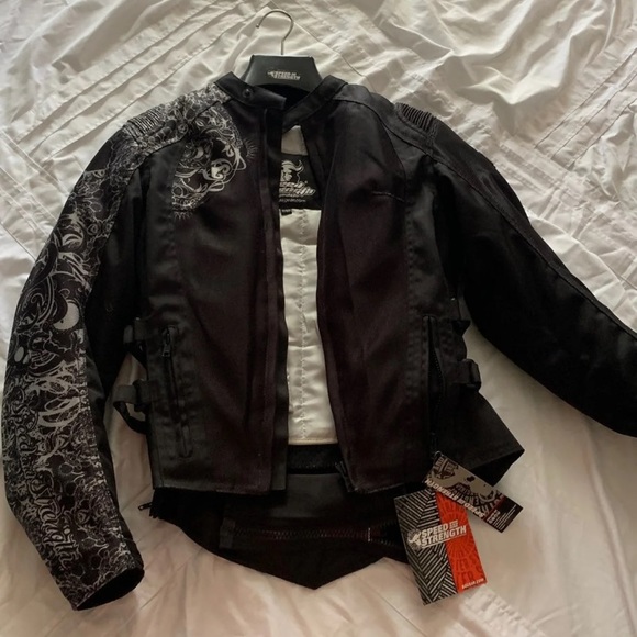 Brand New Speed & Strength Women’s motorcycle jacket!! Tags still attached. Very good quality! Bought it at Indian Motorcycle in Daytona during Bike Week. Straps on wrists and on the sides to make it tighter if necessary. Heavy duty shoulder pads, elbow pads, & back plating all on the inside, (most of it is removable). Size small in Women’s.
