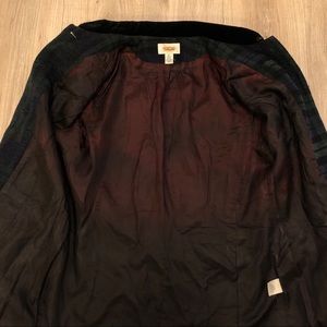 The jacket is pinned in the main photo. The second photo shows it unpinned.