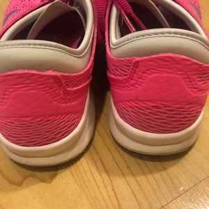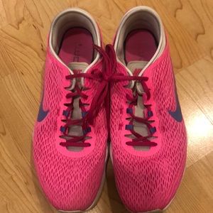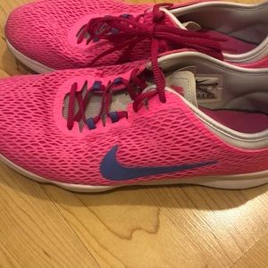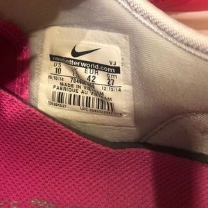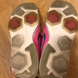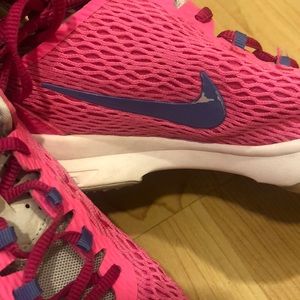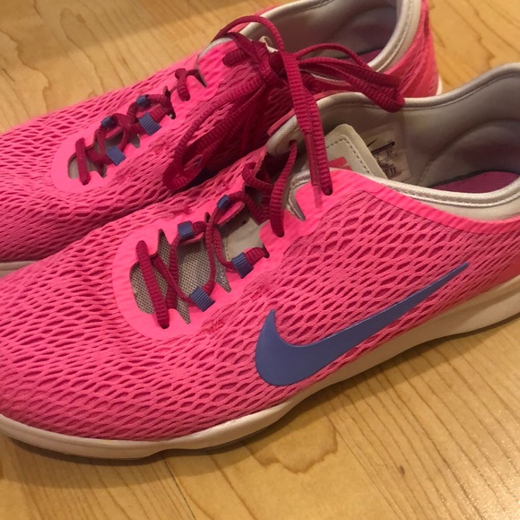 Nike Training Zoom Fit. Size 10. Minimal wear, see last photo of inner Nike symbol. Beautiful neon pink color with purple Nike swoosh.