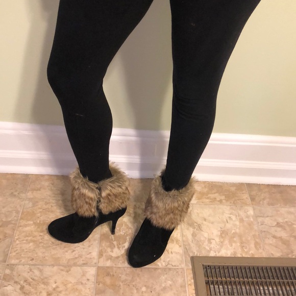 Furry suede ankle heel boots only wore once