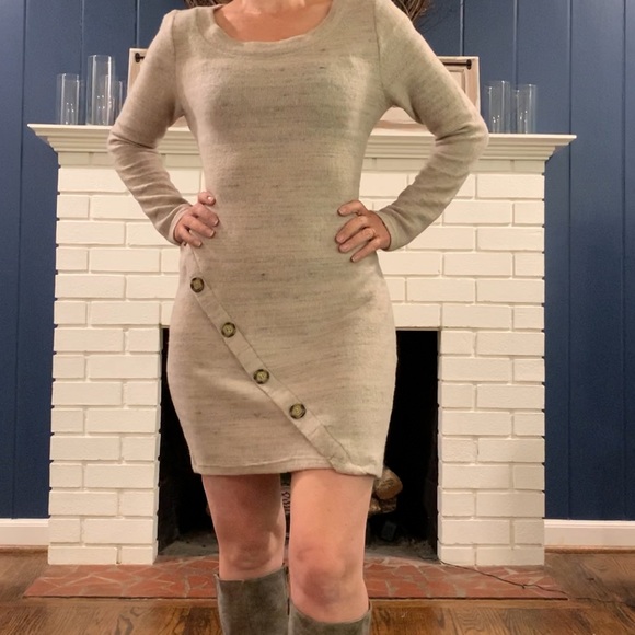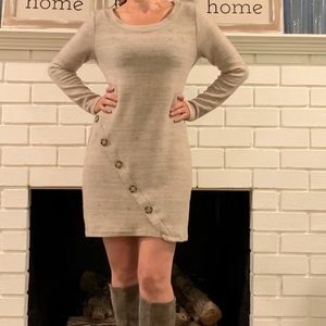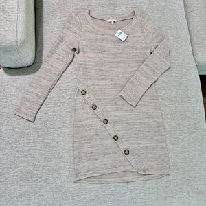 Get ready for Fall with this NWT sweater dress. Features super soft fleece material and button detail. Tapered at waist to give shape. Would look great with boots.
