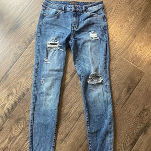 Mid to high rise slightly distressed jeans from guess with vintage tag in great condition.