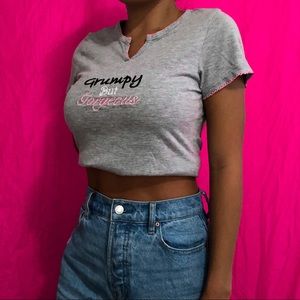 Grumpy but gorgeous graphic tee. Originally a full size shirt but would look so trendy and vintage cropped. Cool leopard pattern on the inside. Really y2k and 2000s vibes! Extremely comfortable and in amazing condition—never worn.