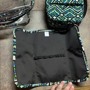Brand new with tags and original zipper wrapping! 3 piece Vera Bradley travel cosmetic set! Color print “Rain Forest.” Super cute and super chic. One large clear bag with the iconic Vera Bradley print trim to hold a smaller all over iconic print bag with quilting pattern inside! And last but not least a beautiful all over pattern fold over cosmetic brush holder with magnetic snap closure! Durable, versatile pieces you can use together or alone! Perfect for traveling or at home storage!