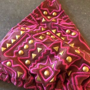 Embellished vintage looking bikini top. Brown pink and gold design. Triangle bikini. Adorable top and fits the y2k 2000s trend. Would look super cute as a top or as a bathing suit. Perfect condition.