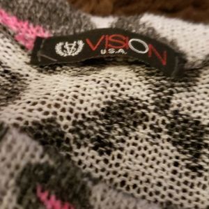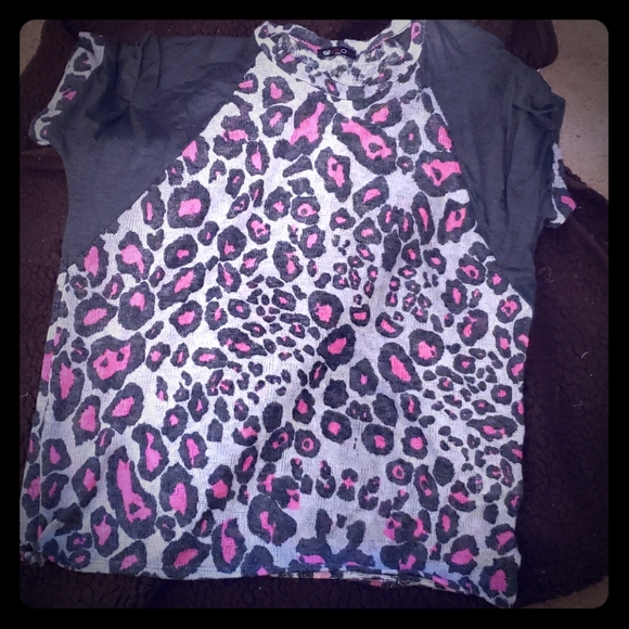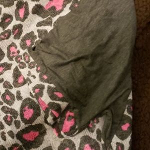 NWOT- grey and pink lepoard print sweater with jersey knit sleeve