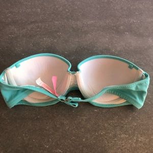Victoria’s Secret push up strapless bikini top. Amazing condition. Light blue color. Built in padding. Amazing quality and condition— no tares or stains. Great top just doesn’t fit me anymore!