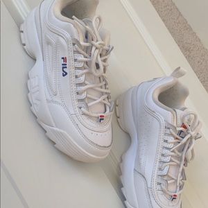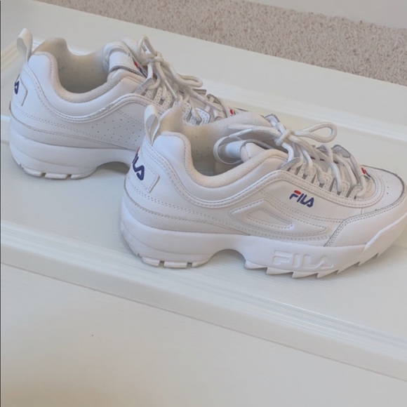 Women’s Filas. All white disrupter 2 Filas. Women’s size 8. Worn multiple times.