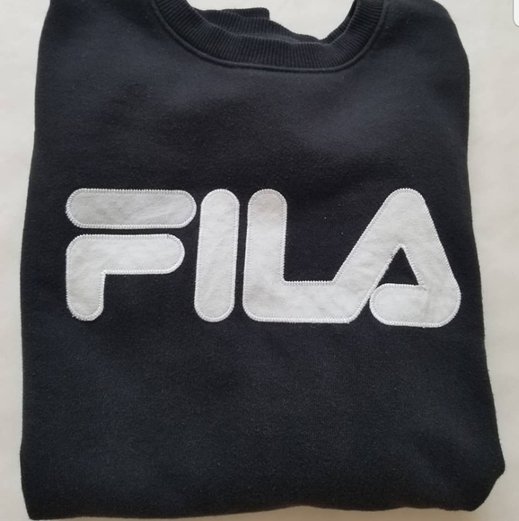 Black FILA Crewneck Logo Sweater, long sleeve, the F in FILA is grey and white. Worn maybe once. No flaws