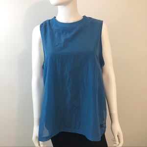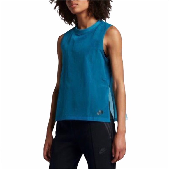 Women’s Nike Sportswear tech hypermesh tank with a high neckline and pleated back. Features a relaxed silhouette, that drapes the body loosely. Breathable mesh panels at the center chest and back pleat.