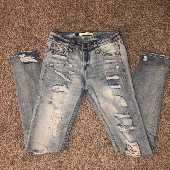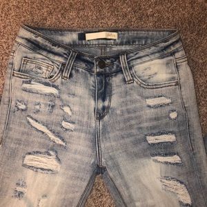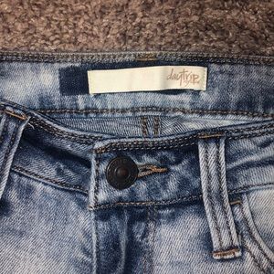 •distressed back pockets & full front