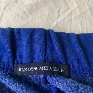 Royal blue brandy melville sweatpants. worn a couple times in great condition. these did shrink a little bit in the dryer so they would be perfect for shorter people. no stains or tears. comment before buying