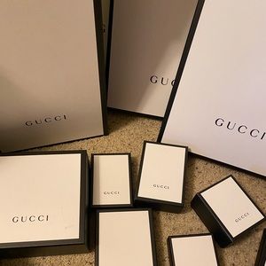 All diff sizes. Good used empty boxes. Gucci boxes come with its original ribbon. Some have the original tissue