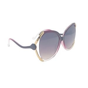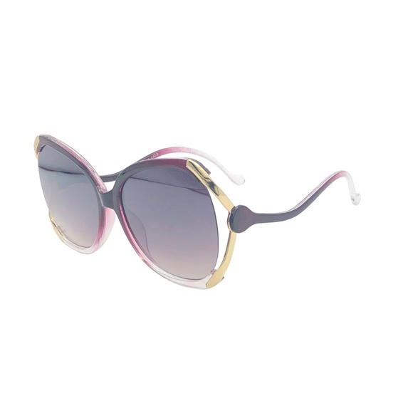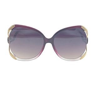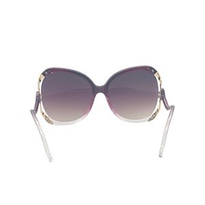 ◾️Frame Design: Mixed clear & dark purple plastic frame, side cut out with gold lining, wave style arms, lens w/ dark brown or purple gradient, built-in nose groove