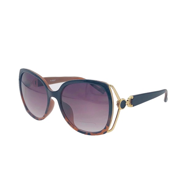 ◾️Frame Design: Gradient tortoise plastic frame & arms,side cut out with gold lining, gradient lens, built-in nose groove, & tan interior