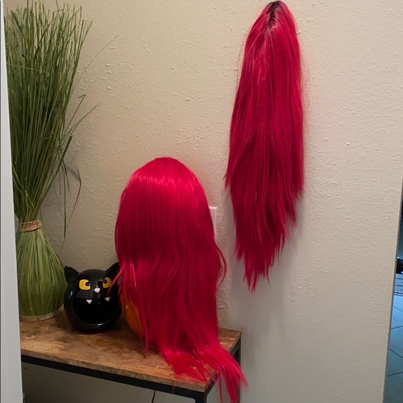 Hot pink wigs both lace front can use heat to straighten or curl both still shiny and pretty 🖤 two clips in front and one in back with adjustable size clips.