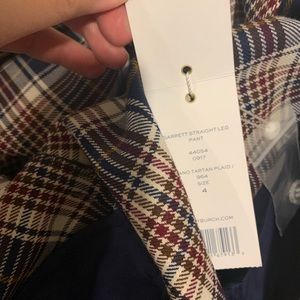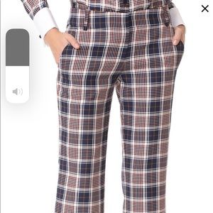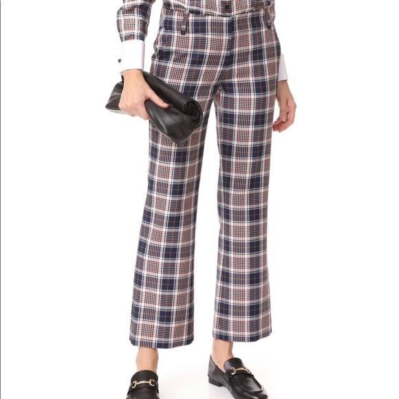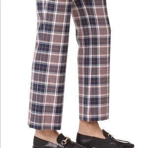 These cropped Tory Burch trousers are cut from classic, preppy plaid. Slant hip pockets and welt back pockets. Hook-and-eye closure and zip fly.