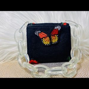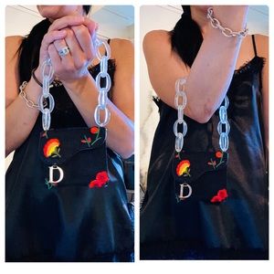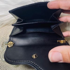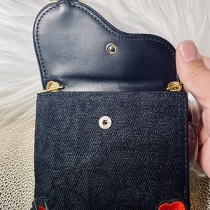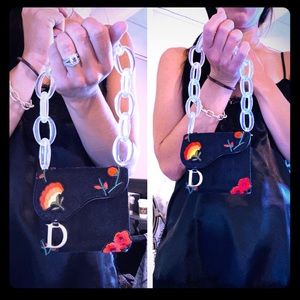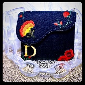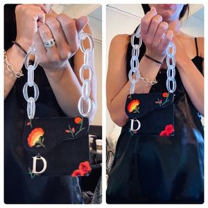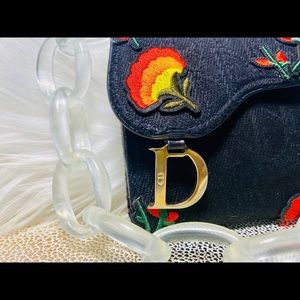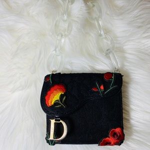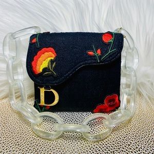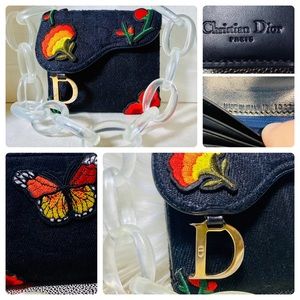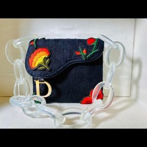Authentic Christian Dior purse, dior logo canvas wallet with lucite chain added. Dior saddle collection! This Purse is professionally cleaned & restored, decals added for a unique piece! Great vintage condition. Outside is Dior canvas, the inside is black leather, inside like new! This Dior is micro, will hold cards, cash, maybe a chapstick! 4 card slots, 5 pockets. Serial number shown. Satchel length. Gorgeous & one of a kind! Authentic!❤️