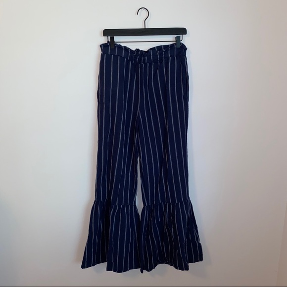 navy blue and white striped flare pants - linen & cotton - has pockets - worn once