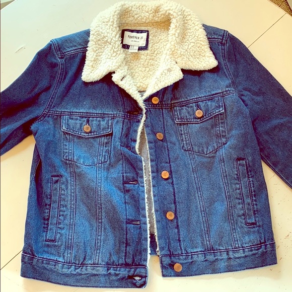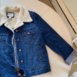 Vintage style jean jacket w/ faux Sherpa collar