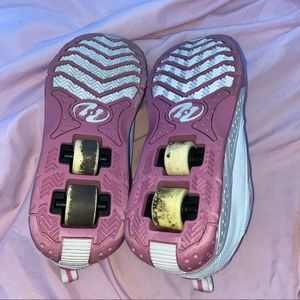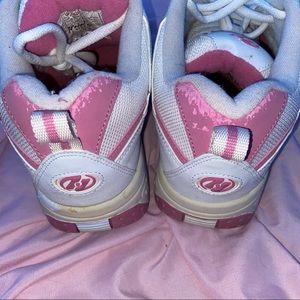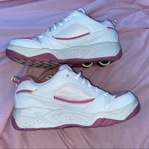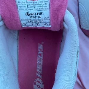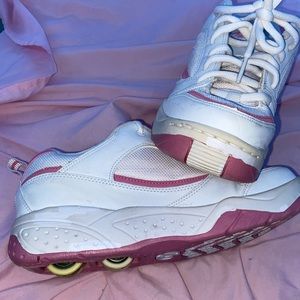 These are a size 9 in women’s they do run big so they could fit between a 9-10. These are in good condition besides the peeling on some parts of the shoes (flaws shown in pictures).