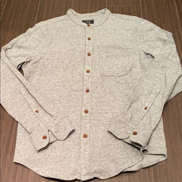 Size L. Men’s gray button down. Rlly thick material and perfect for cold seasons! Never worn and perfect condition!