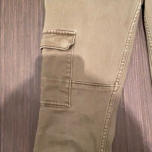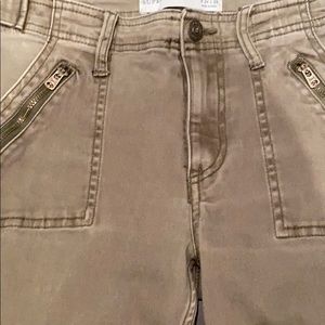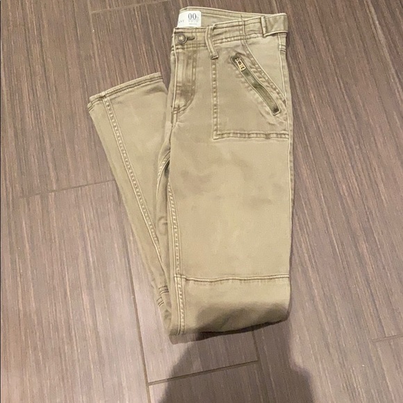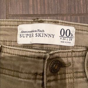 Size 00 L. Abercrombie army green pants. Has lots of pockets and zippers and superrrr cute. Worn but still amazing condition.