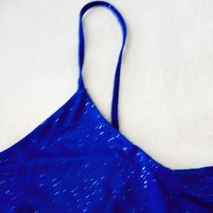 New Glitter Sequin Roal Blue Party Mini Dress , Sleeveless , V- neck , Breast pit to pit 19", Straps 17" (not adjustable) , Strecthing.Dry clean. Free smoking and pet home