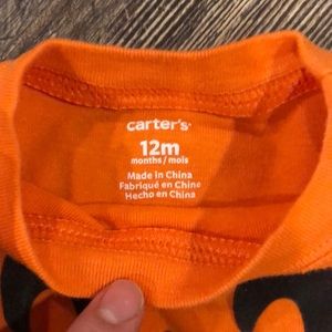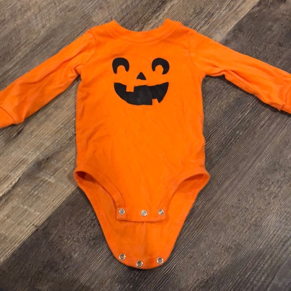 Perfect for the season!!! One orange pumpkin print Carters onesie. Felt pumpkin face makes this the cutest outfit for all the fall festivities!!! Sized 12 month but looks more like 9 to me.