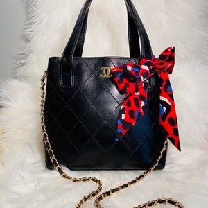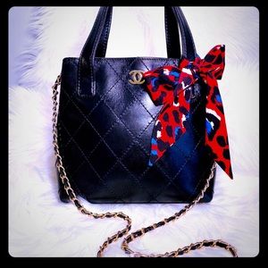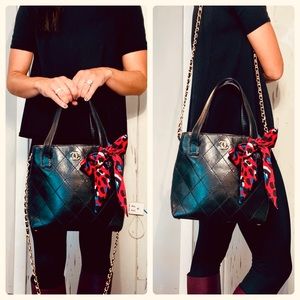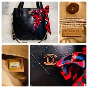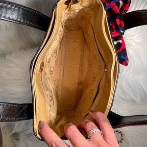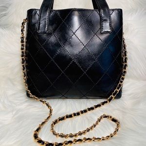 Authentic Chanel Purse, quilted leather, with removable chain added. Great everyday size! This Purse was professionally dyed in black lacquer, cleaned & sealed, good as new & won’t come off! Inside is spotless CC silk. It has double leather looping handles, large interlocking CC emblem, gold feet on bottom. Authenticity sticker intacted. Purse has 4 large pockets inside & main section. Gorgeous, no flaws to mention! 9.5”x9”x3”. shoulder/crossbody, or satchel. Posh will authenticate ❤️