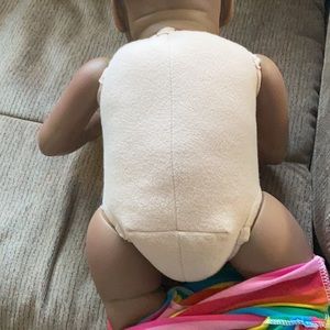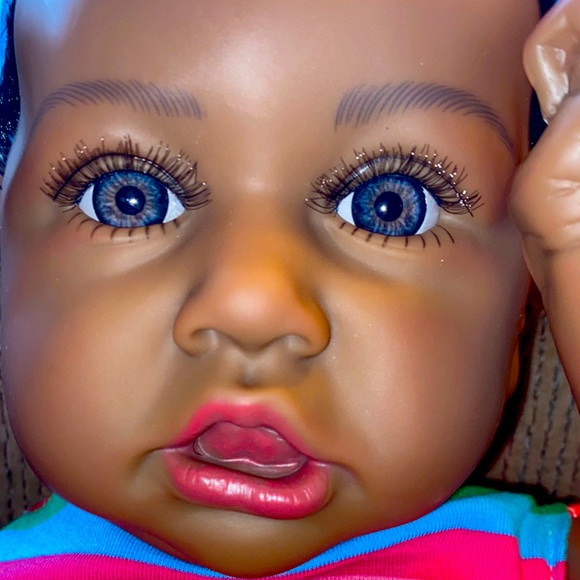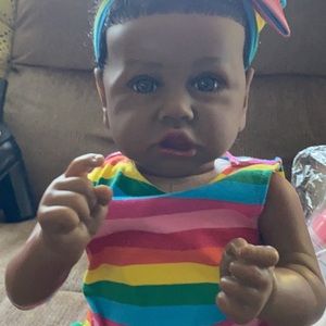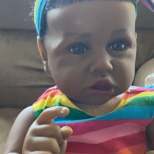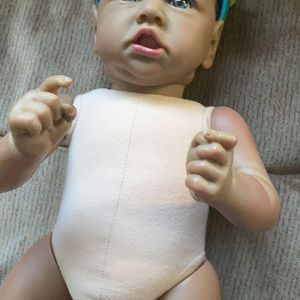 She’s a full body Vinyl body weighty and looks like a real toddler. Beautiful coloring and beautiful eyes.